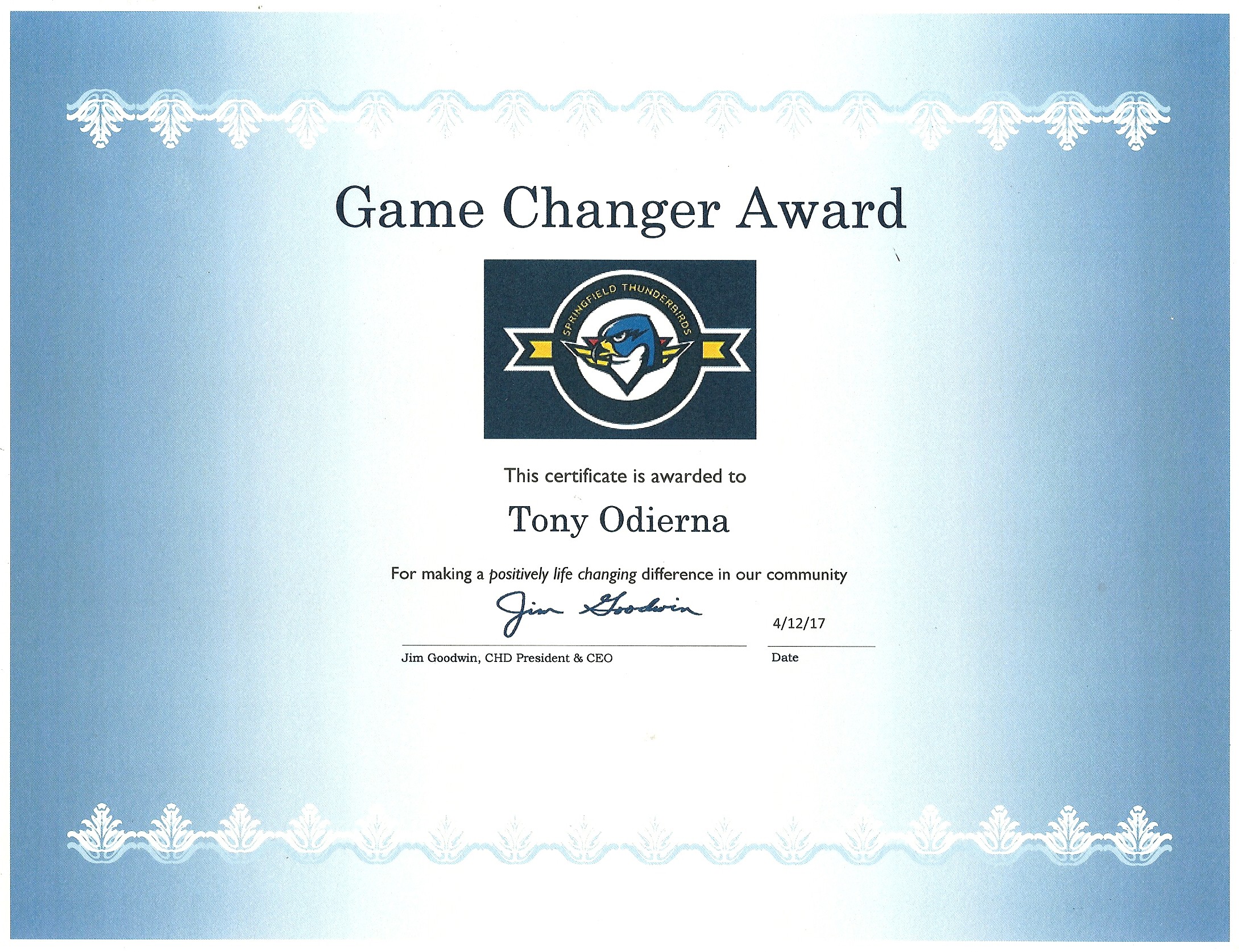 Game Changer Community Service Award (Click on picture to enlarge it.)